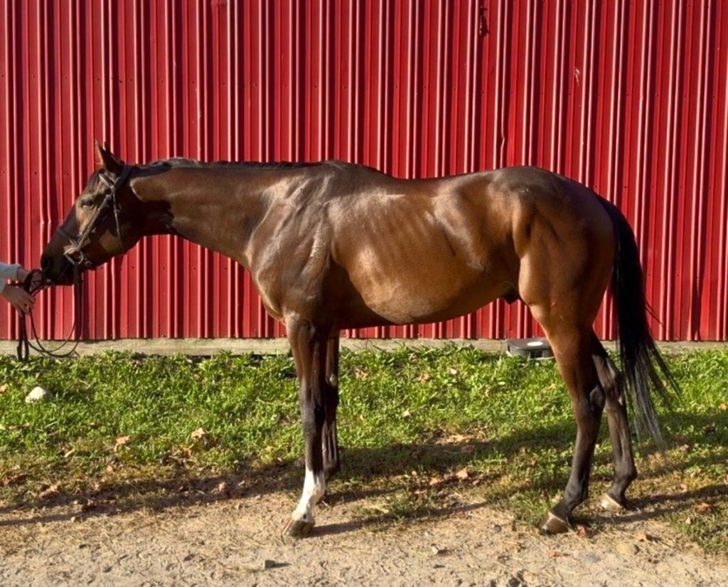 JC- Oyster Soup: AKA Osso is a four year old off the track thoroughbred gelding sticking at 15.3 hands, with some growing left to do. Not yet restarted, one post track ride. 2026 RRP eligible and would love to see him end up with someone hoping to take him to RRP. He has a BIG personality, in your pocket, super cuddly (loves nose kisses and peppermints) the sweetest boy, old soul type and loves to please. I cannot say enough good things about this one’s brain. Such a cute mover and has all the potential! Put together nicely, clean legs, and no past injuries/ soundness issues along with no vices. Last raced 6/20/25, lightly raced with only five career starts, just too slow! FOR SALE ONLY