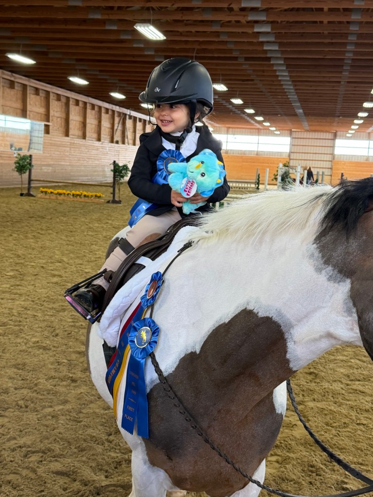 Our Tiny Tots program is a fun, gentle introduction to horses for our youngest riders. Designed for children ages 2–5, each 30-minute lesson is divided into two parts. The first half focuses on hands-on horsemanship, where kids learn age-appropriate basics like grooming, tacking with help, leading, and barn safety. The second half of the lesson is spent enjoying a pony ride lesson, building confidence, balance, and a love for being in the saddle.